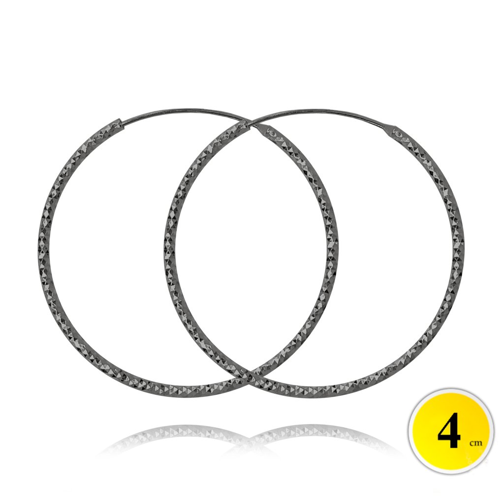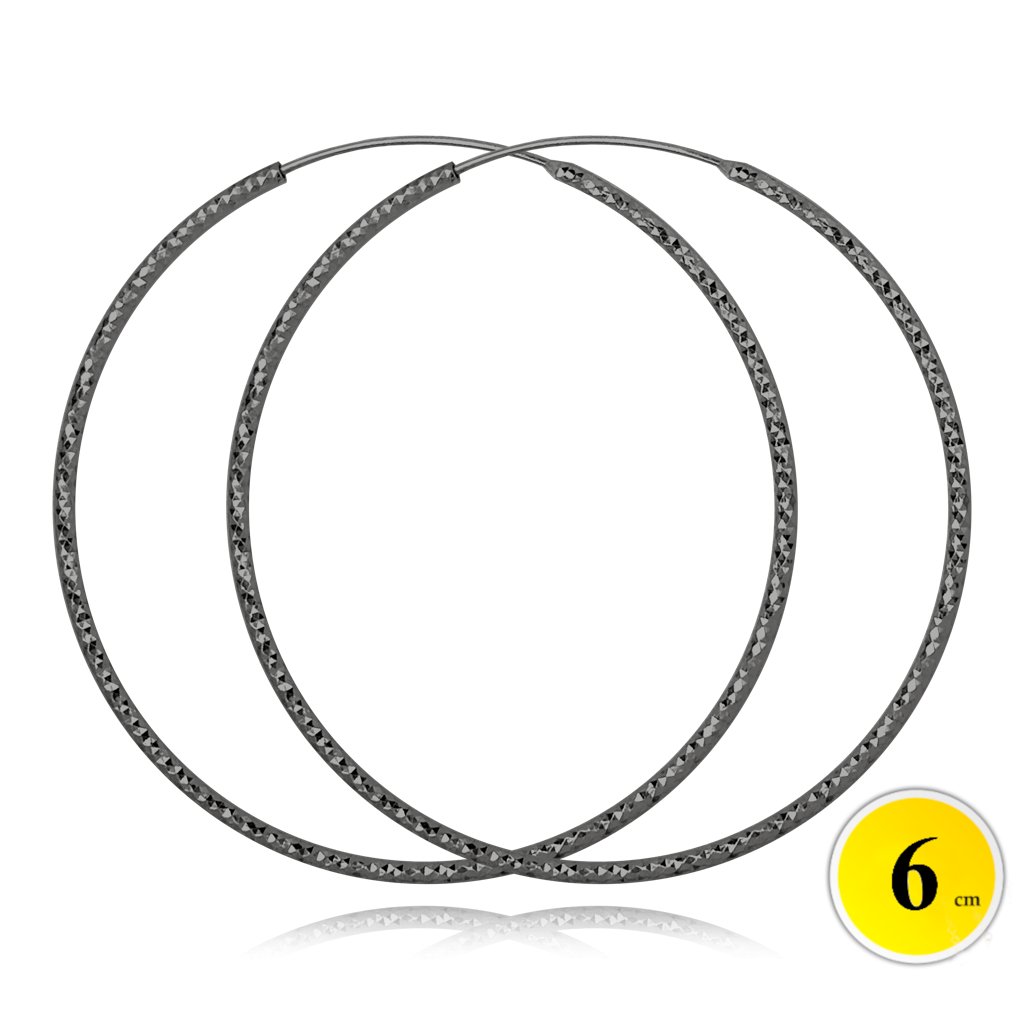 Broušené stříbrné náušnice kruhy v černém provedení jsou moderním šperkem, který zaujme elegantním kontrastem a výrazným leskem.