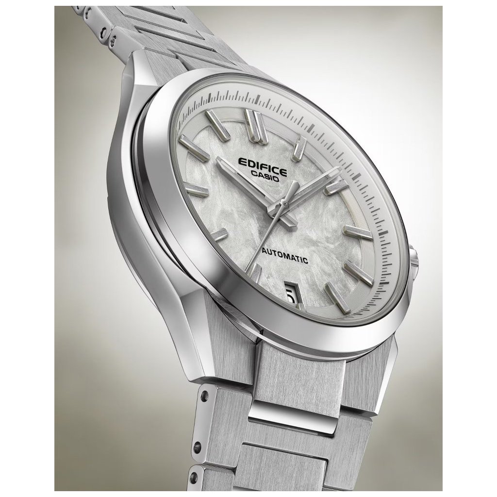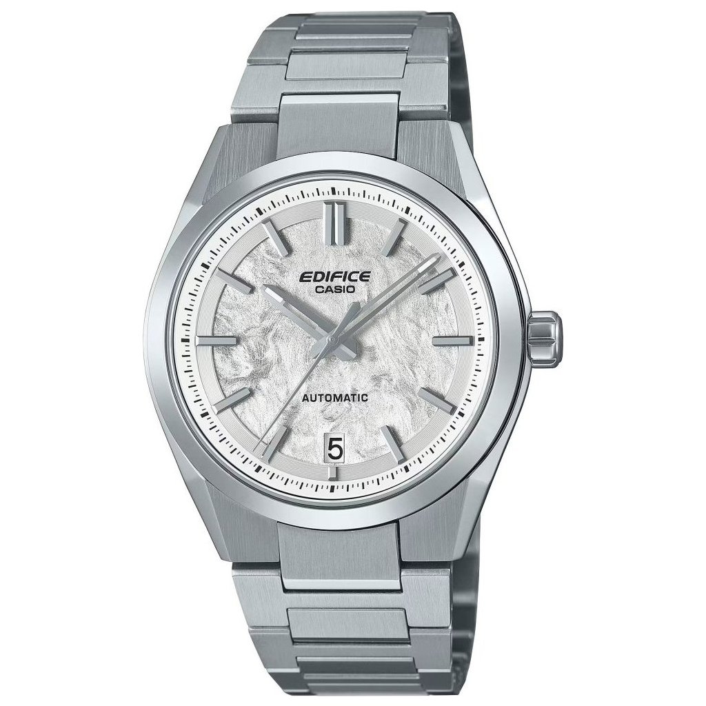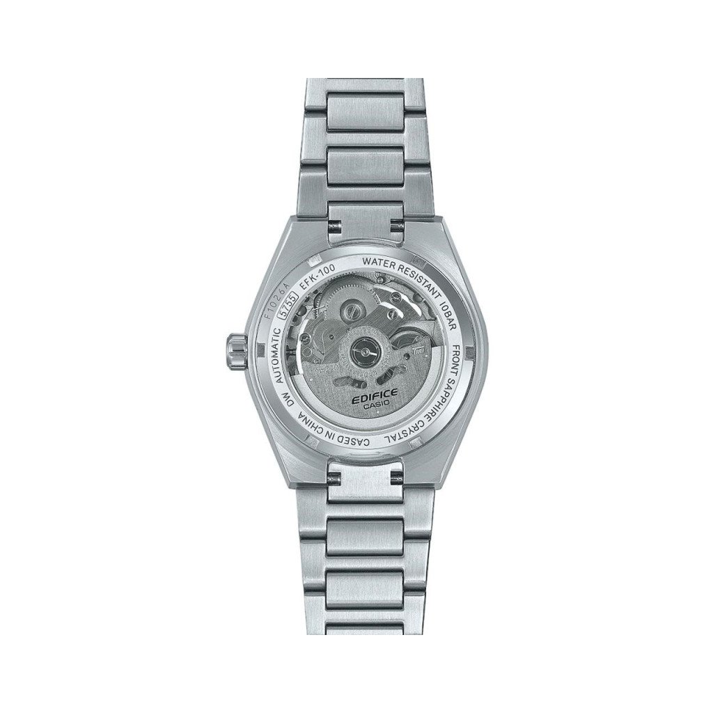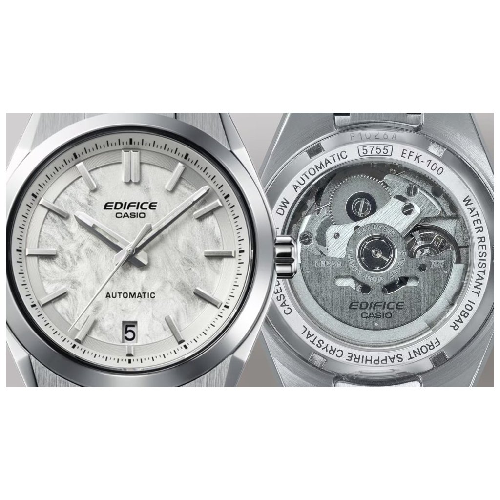 Nové Casio Edifice Automatic EFK-100 jsou prvními mechanickými hodinkami japonského výrobce CASIO.Plastika na číselníku připomíná vzhled kovaného uhlíku a dotváří tak sportovní nádech modelů. Hodinky mají stříbrnobílý číselník a aplikované indexy na hodinových pozicích. Chráněn je safírovým sklíčkem, zajišťujícím vysokou odolnost proti poškrábání.