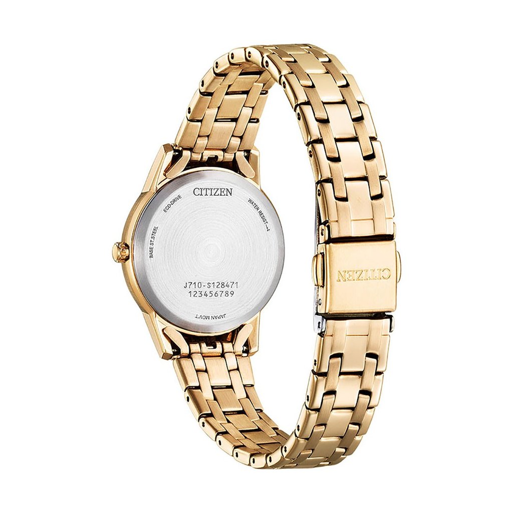 Dámské hodinky Citizen Eco-Drive Ladies FE1243-83A si své majitelky získávají především svým elegantním provedením. Velkou výhodou je však pohon Eco-Drive, který zajišťuje napájení pomocí energie ze světla, přičemž odpadá nutnost výměny baterie. Hodinky Citizen FE1243-83A mají pouzdro včetně náramku vyrobené z ušlechtilé oceli s PVD úpravou v barvě růžového zlata. Uvnitř pouzdra spolehlivě pracuje in-house strojek Citizen, který disponuje světlem dobíjeným akumulátorem s rezervou chodu až 6 měsíců a disponuje též funkcí indikátoru vybití akumulátoru.