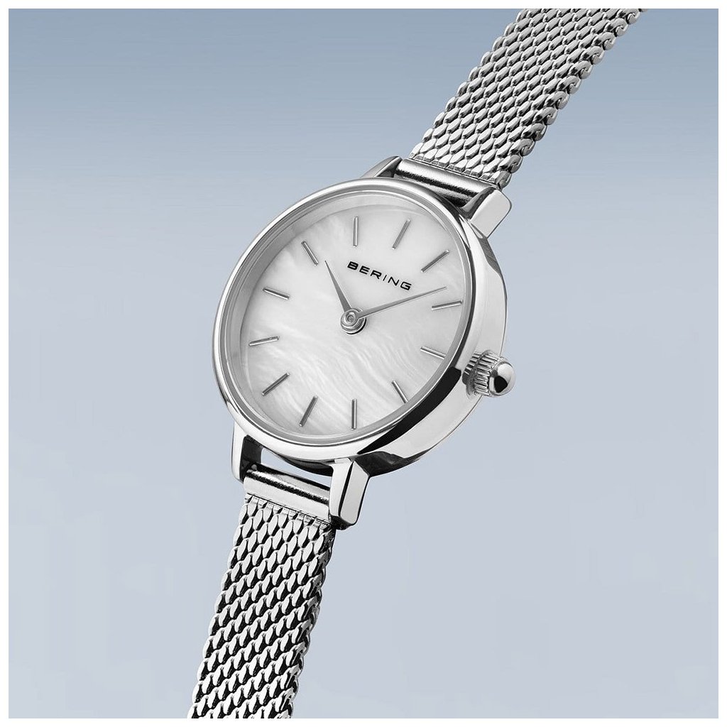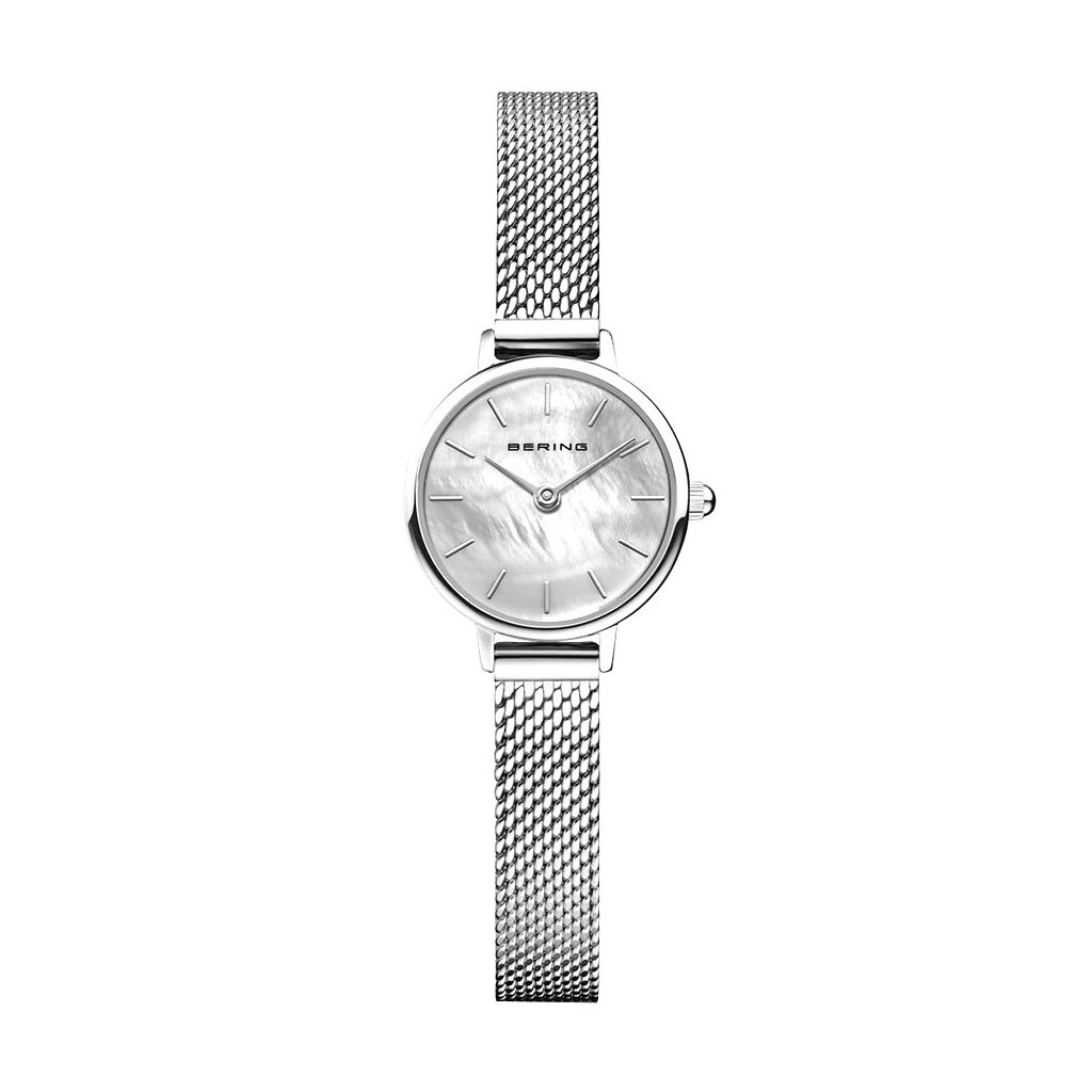 Hodinky z dílny dánské značky Bering budou dělat radost každé ženě, která si libuje v elegantních doplňcích. Perleťový ciferník je zpracován v minimalistickém stylu. Je vložen do ocelového pouzdra, na které navazuje uzoučký milánský tah ve stříbrném provedení, jenž snadno přilne ke každému zápěstí. Safírové sklíčko je odolnější vůči poškrábání, hodinky si tak po dlouhou dobu uchovají svůj nový lesk. Dolaďte svůj outfit vkusným doplňkem.
