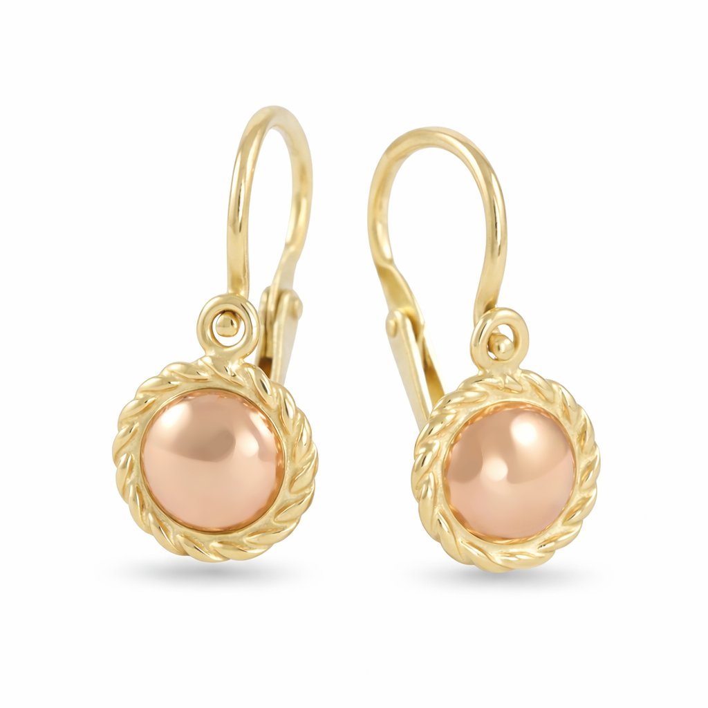 Vyrobeny z zlata ryzosti 585/1000 (14 kt) ve dvou barevných odstínech, které šperku dodávají jedinečný vzhled. Zlatý materiál je vhodný i pro citlivé dětské ouška a je odolný vůči běžnému opotřebení. Precizní zpracování zaručuje kvalitu a dlouhou životnost.