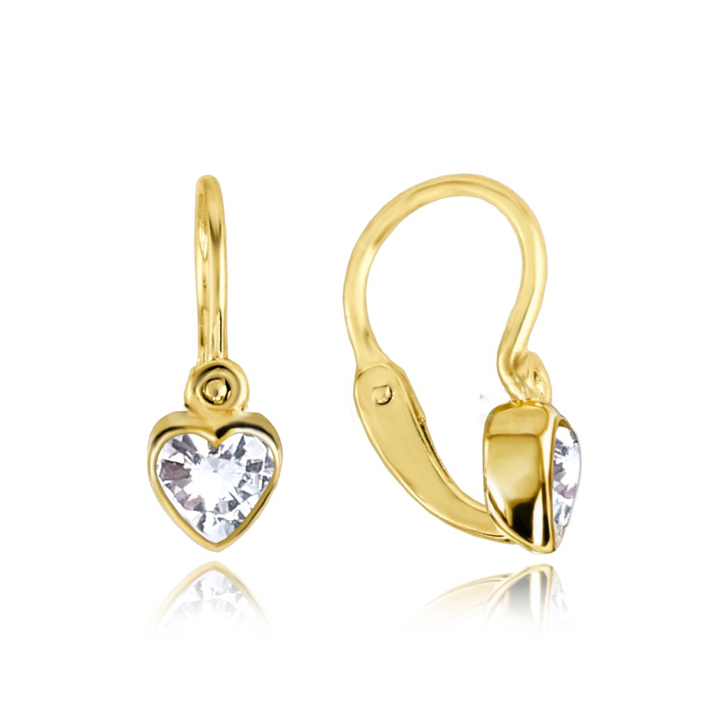 Dětské zlaté náušnice ve tvaru srdíček se zirkony jsou krásným a jemným šperkem, který dokonale ozdobí uši vaší malé princezny. Díky jemnému designu a zářivým bílým zirkonům jsou ideálním doplňkem pro každodenní nošení nebo speciální příležitosti.