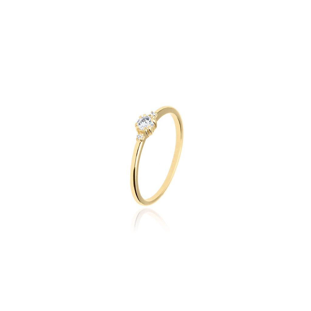 Zlatý prsten s diamantem je luxusní a elegantní klenot, jehož hlavní ozdobou je diamant o váze 0,15 ct.