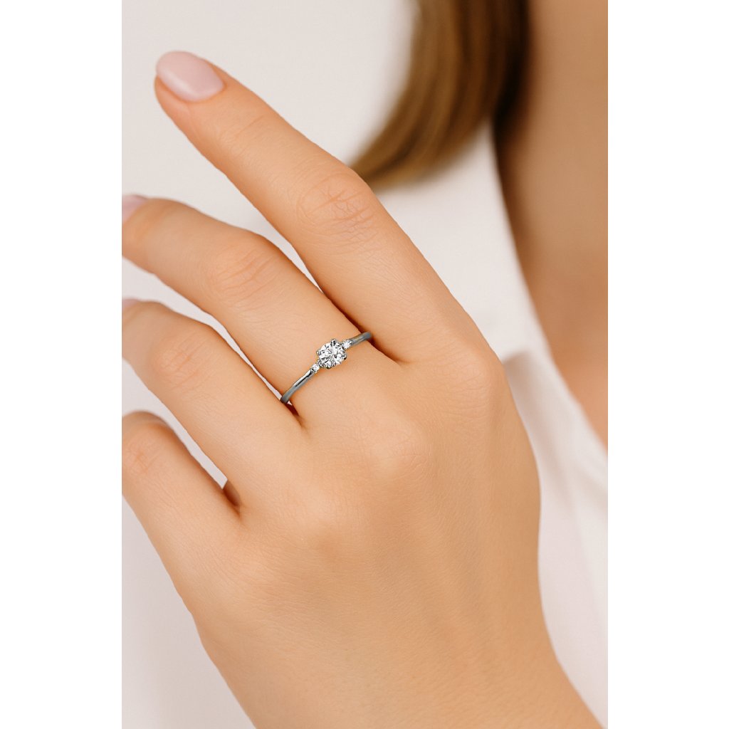 Jeho nadčasový design klade důraz na brilanci centrálního diamantu, který dodává prstenu sofistikovaný a zářivý vzhled. Prsten je navržen s ohledem na jemnost a eleganci, což ho činí skvělou volbou pro významné životní události.