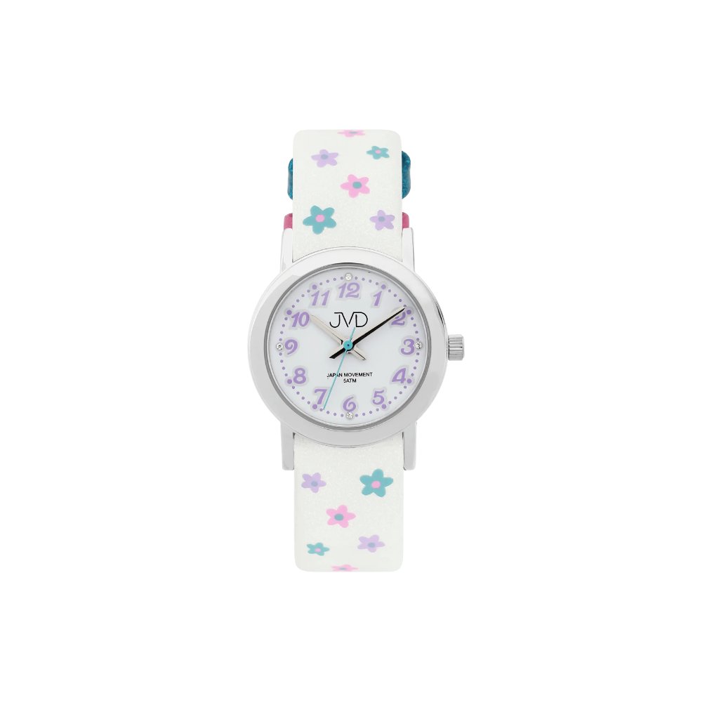 JVD dívčí bílé náramkové hodinky JVD J71973 s kytičkami.