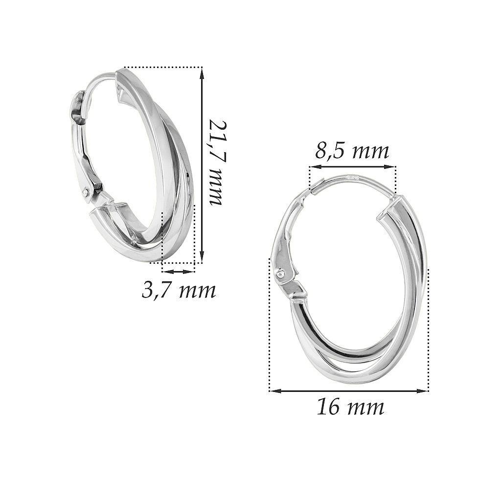 Elegantní náušnice ve tvaru půlkruhů s hranatým profilem z bílého zlata zaujmou svým moderním a čistým designem. Kombinace geometrického tvaru a lesklého povrchu působí velmi stylově a nadčasově.