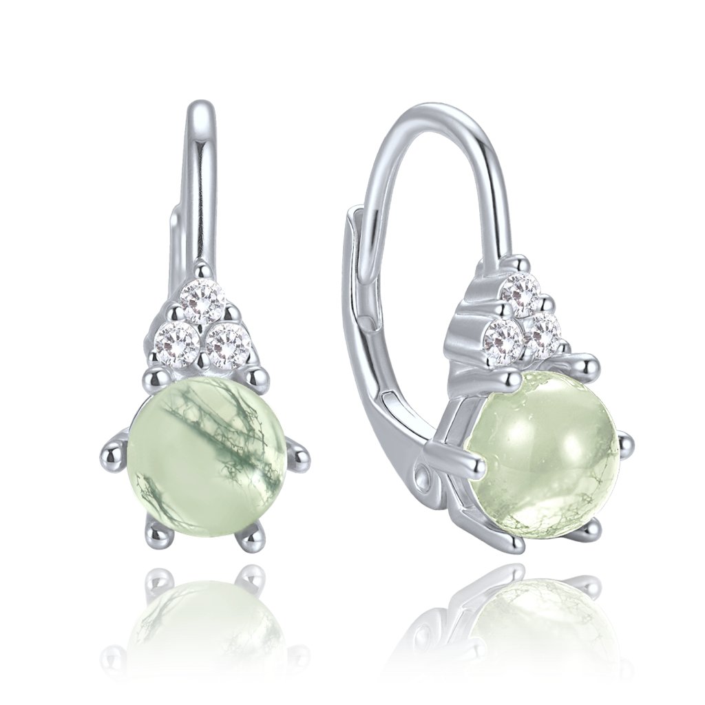 Elegantní stříbrné náušnice se svělým mechovým achátem a zirkony