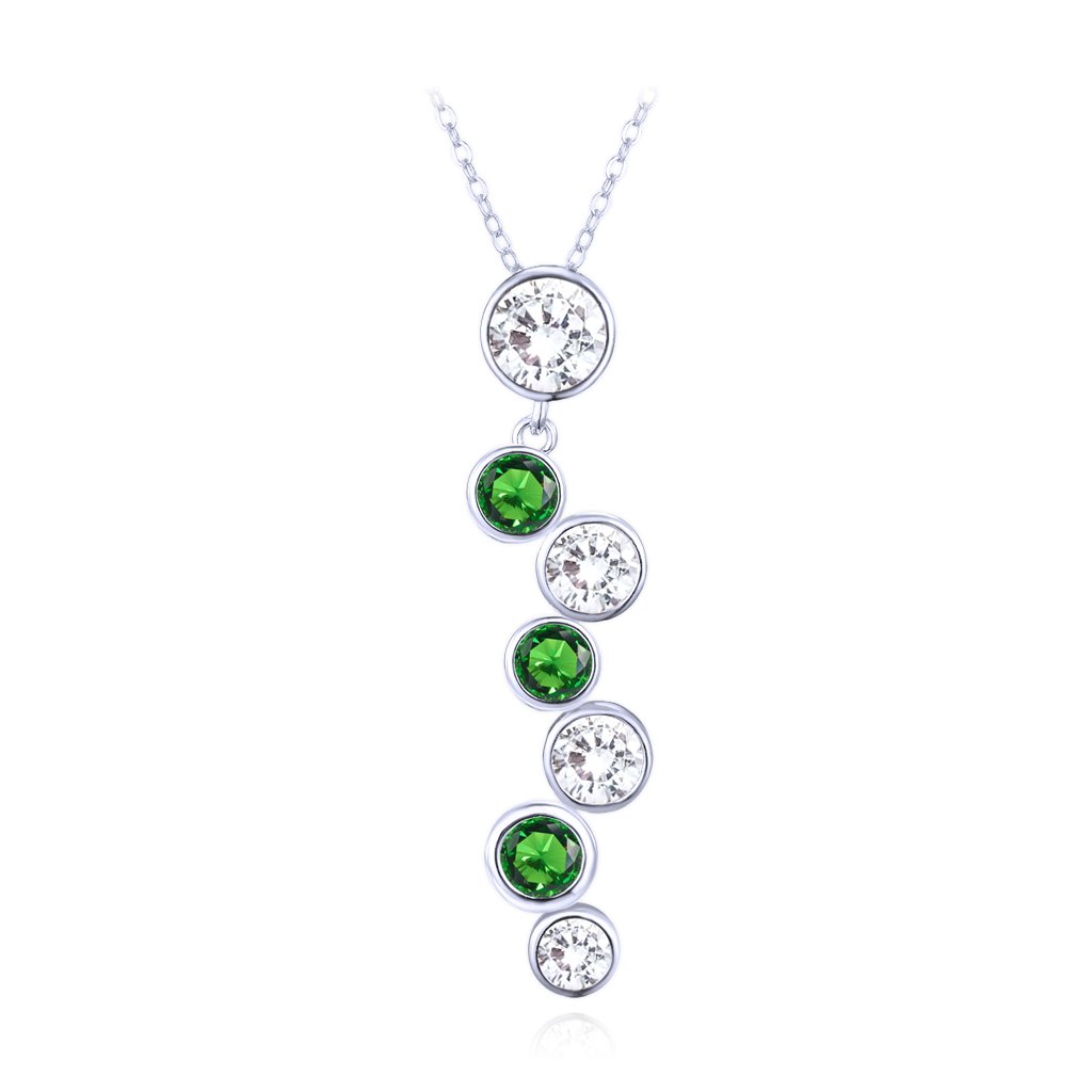 Elegantní stříbrný náhrdelník s bílými a zelenými zirkony