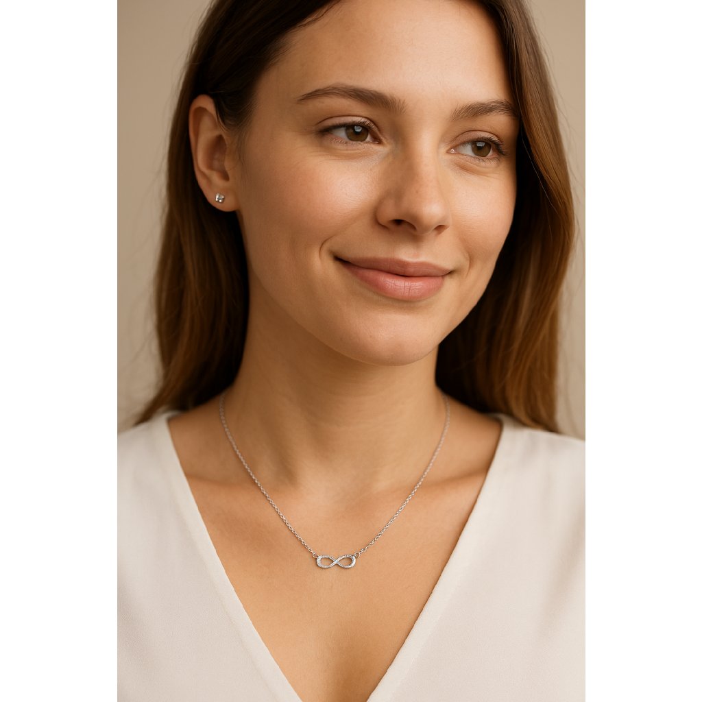 Nekonečný tvar symbolizuje nekonečnost, věčnost a spojení – vhodný motiv pro milostné dary nebo osobní symboliku. Příjemný design v kombinaci s lesklými zirkony jej činí skvělou volbou pro slavnostní příležitosti i elegantní denní nošení.