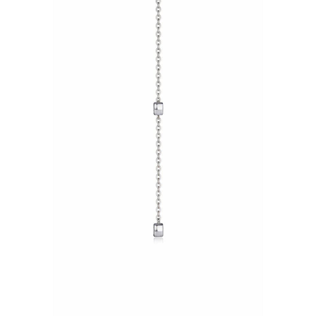 Náhrdelník je vyroben z kvalitního stříbra ryzosti 925/1000 s rhodiovanou úpravou, která zvýrazňuje jeho lesk a zároveň pomáhá chránit povrch před poškrábáním. Centrální kámen je moissanit o velikosti cca 0,10 ct a průměru cca 3 mm. Tento kámen je broušený pro maximální optický efekt a jeho brilance krásně doplňuje stříbrný řetízek.