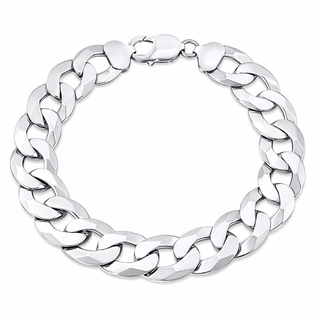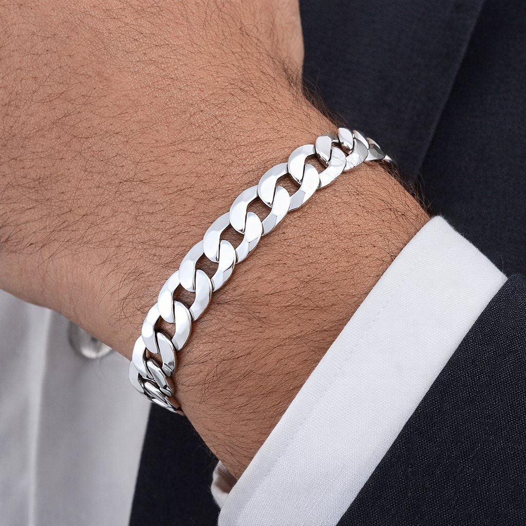 Náramek je vyroben ze stříbra ryzosti 925/1000 s rhodiovanou povrchovou úpravou pro lepší lesk a odolnost proti poškrábání. Díky pevnému karabinovému zapínání se snadno nasazuje a bezpečně drží na ruce. Jeho masivní provedení je vhodné jak pro muže, tak pro ženy s pevnějším stylem šperků.