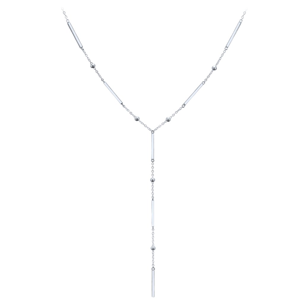 MINET Elegantní stříbrný náhrdelník s tyčkami, kuličkami a visícím řetízkem