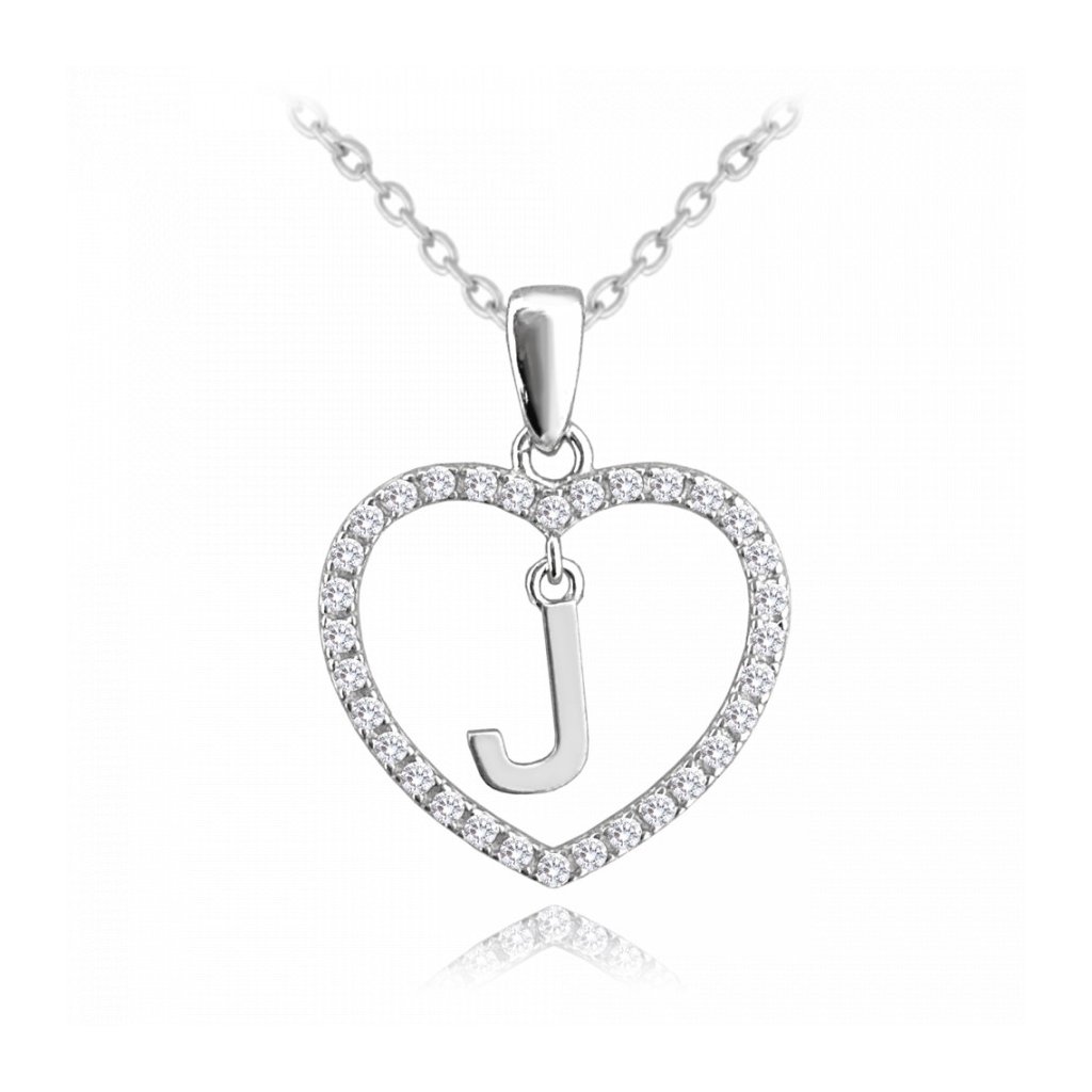 Minet Stříbrný náhrdelník písmeno v srdíčku "J" se zirkony JMAS900JSN45