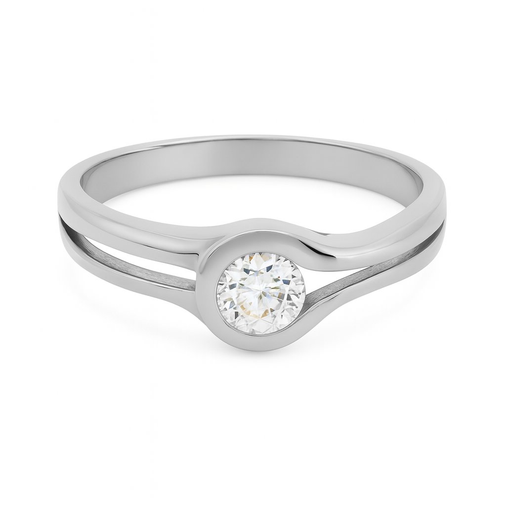 Prsten má čistý, jednoduchý tvar s osazeným zirkonem, který zachycuje světlo a dodává prstenu jiskru. Díky jednoduchému, ale elegantnímu provedení je prsten vhodný pro denní nošení i slavnostní příležitosti. Design je navržen tak, aby kámen vynikl a ruka vypadala elegantně a upraveně.