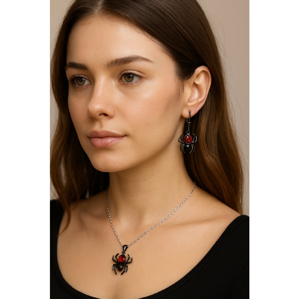 Kombinace tmavého kovu a rudých kamínků vytváří dramatický kontrast, který upoutá pozornost a dodat styl s odvahou. Jejich detailní provedení imituje jemné tělíčko pavouka, což dodává šperku osobitý charakter.