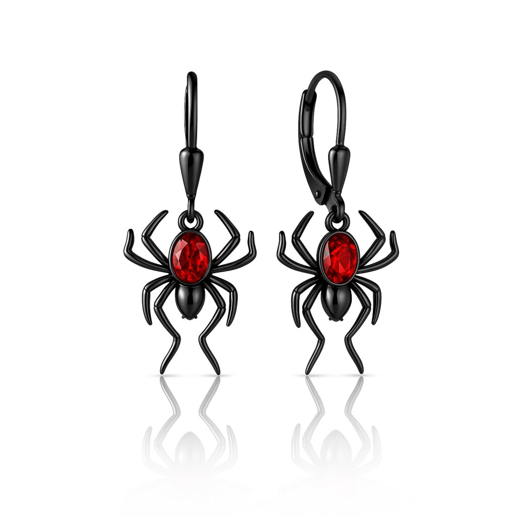 Pro milovnice výrazných a netradičních šperků jsou tu tyto moderní černé stříbrné náušnice ve tvaru pavouků, zdobené zářivými červenými kubickými zirkony.