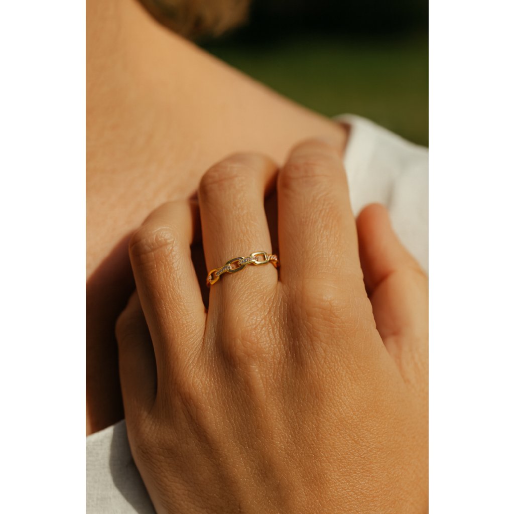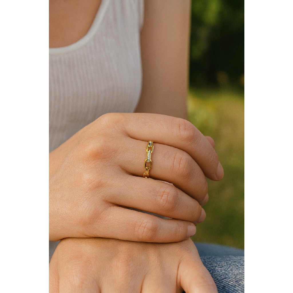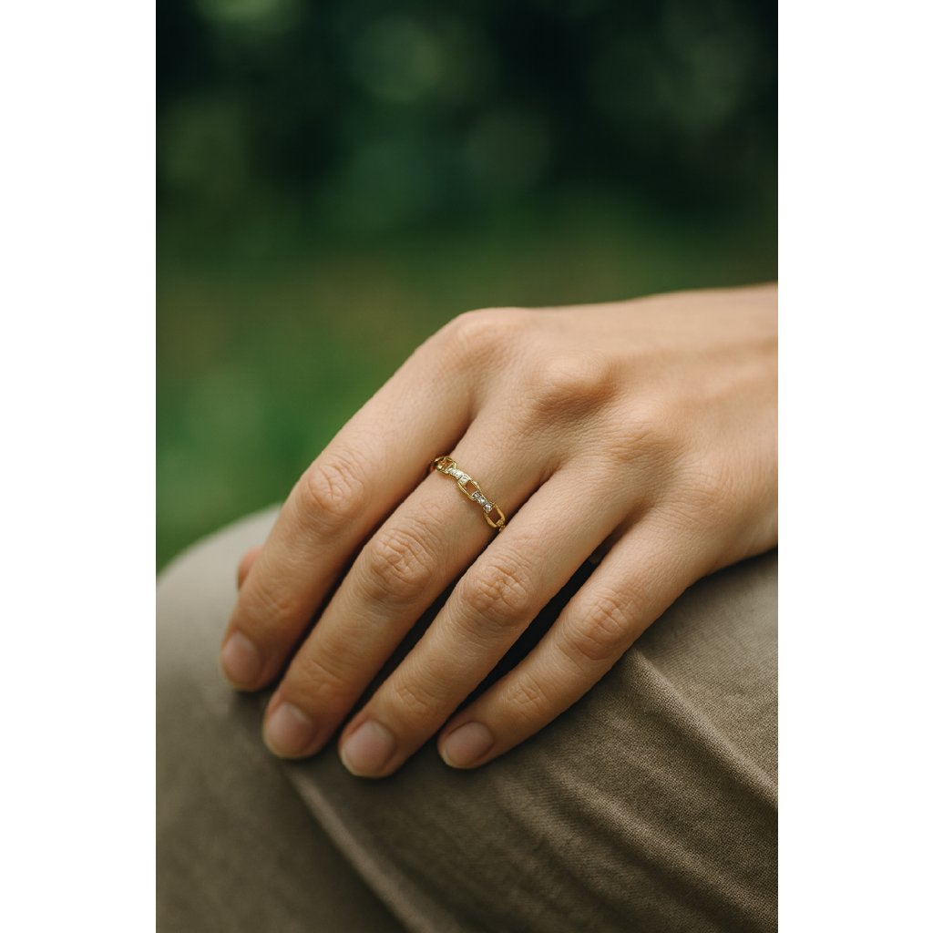 Moderní zlatý prsten je dokonalým spojením jednoduchosti a elegance. Jeho čisté linie a osazení jemnými zirkony z něj činí nadčasový šperk, který se hodí k různým stylům oblékání.