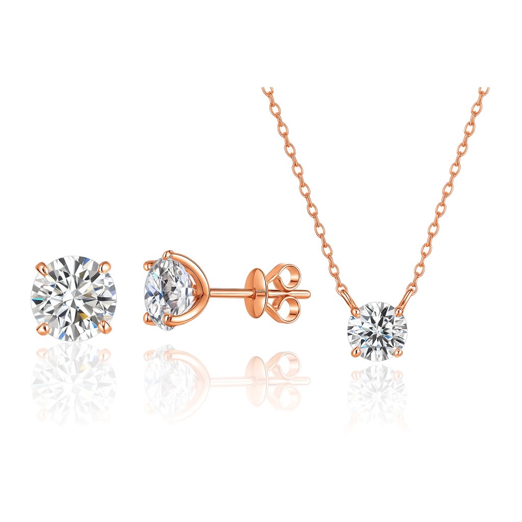 Elegantní moissanitová souprava v rose stříbře zaujme svým jemným, ale výrazným vzhledem. Růžové zlacení dodává šperkům moderní a romantický nádech, který krásně ladí s jasem moissanitových kamenů. Sada je vhodná pro ženy, které hledají luxusní doplněk s nadčasovým stylem.