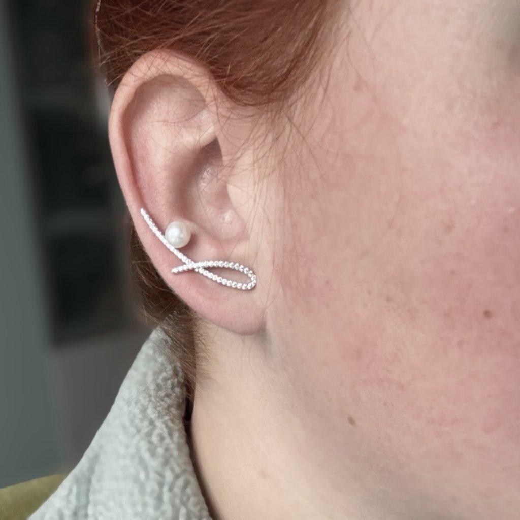 Objevte krásu v jednoduchosti s těmito elegantními stříbrnými náušnicemi ozdobenými perlou. Jejich čistý a harmonický vzhled působí sofistikovaně a jemně, což z nich dělá ideální doplněk pro každou příležitost.