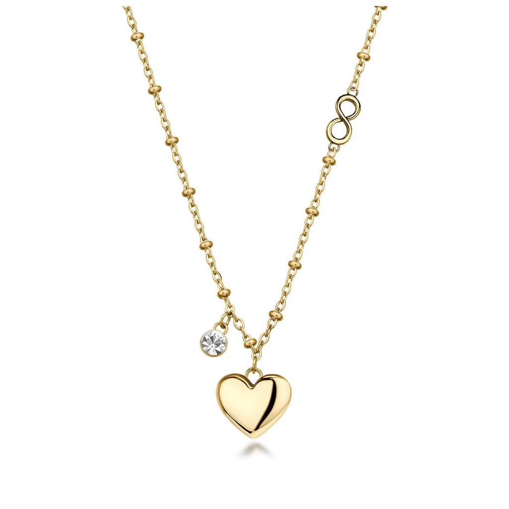 Elegantní náhrdelník značky Brosway je elegantní šperk, který dokonale podtrhne ženskou krásu ,vyrobený z kvalitní pozlacené chirurgické oceli 316L nabízí moderní design ,čirý krystal a symbol nekonečna propůjčují šperku krásný vzhled, dekorovaný přívěskem ve tvaru oblíbeného srdíčka ,ideální pro každodenní nošení i speciální příležitosti. Dodáváme v originální krabičce značky Brosway.