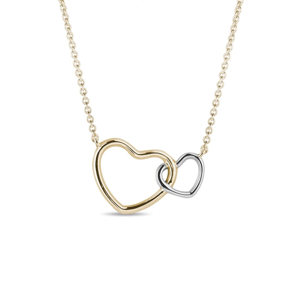 Náhrdelník pohyblivá srdce ze žlutého a bílého zlata