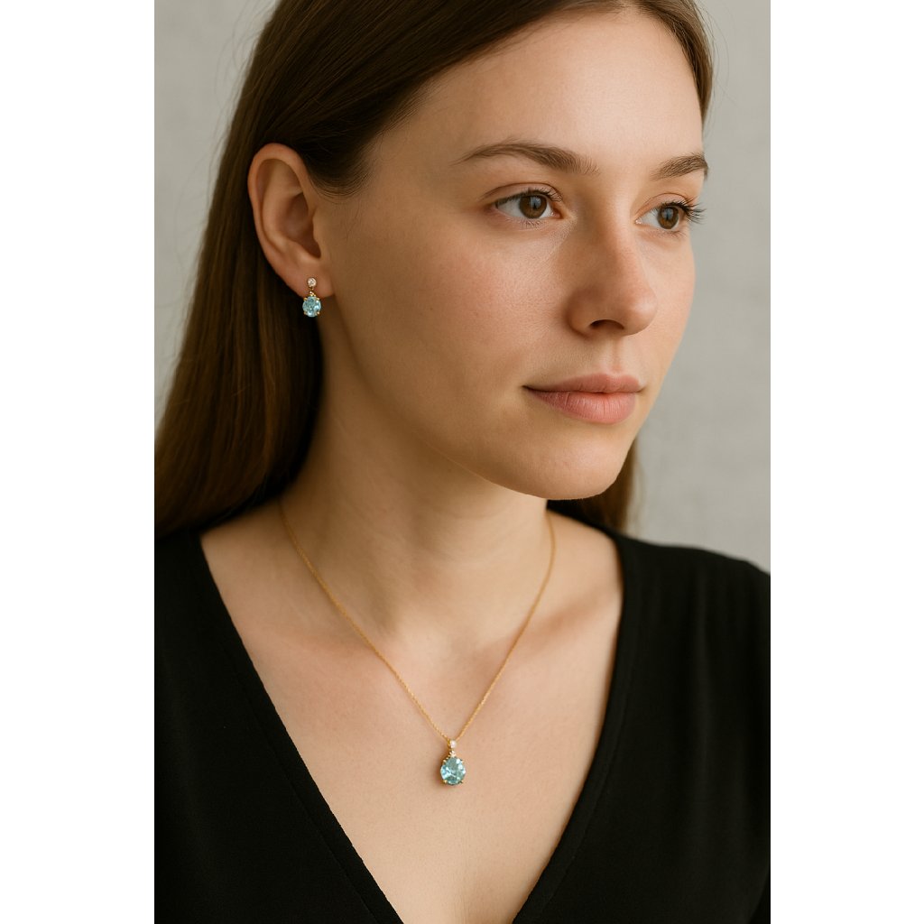 Náhrdelník je vyroben z kvalitního zlata, které poskytuje trvanlivost a krásný lesk. Modrý topaz je ceněn pro svou intenzivní barvu a jasnost, zatímco diamant zajišťuje brilanci a sofistikovaný vzhled. Spojení těchto dvou drahokamů vytváří harmonický a luxusní šperk.