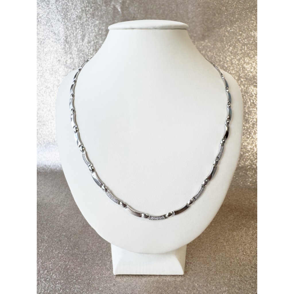 Náhrdelník z bílého zlata je sofistikovaný a nadčasový šperk, který dodá každému outfitu jemnou eleganci. Jeho jednoduchý, ale luxusní design je ideální pro každodenní nošení i pro výjimečné příležitosti, kdy chcete podtrhnout svůj osobní styl.
