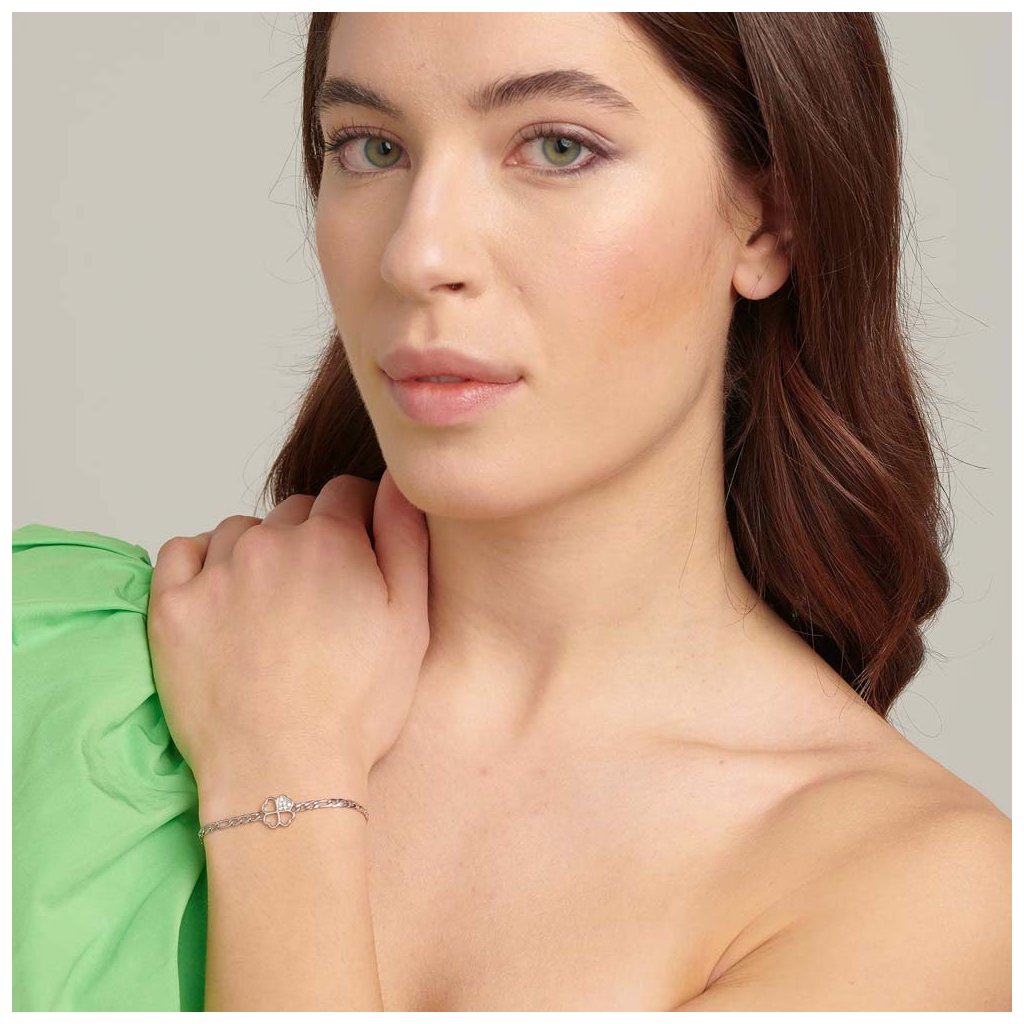 Slušivý náramek italské značky Brosway, vyrobený z ušlechtilé oceli dodává šperku nádech luxusu, zdobený třpytivými krystaly Swarovski a přívěskem čtyřlístku. Potěší každé ženské srdce.
