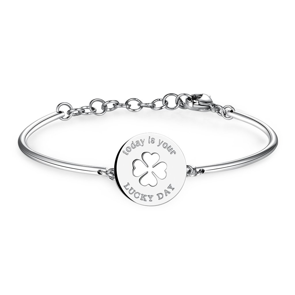 Stylový náramek Chakra značky Brosway je elegantní doplněk určený pro ženy ,vyrobený z kvalitní chirurgické oceli 316L ,s rytinou "Today is your lucky day" na povrchu a motivem výřezu čtyřlístku ,tento náramek nejen že skvěle vypadá, ale také nese pozitivní poselství,jeho unikátní výřezová úprava a ocelová karabina zajišťují pohodlné nošení a dlouhou životnost ,skvělý kousek pro každodenní nošení nebo jako dárek. Dodáváme v originální krabičce značky Brosway.