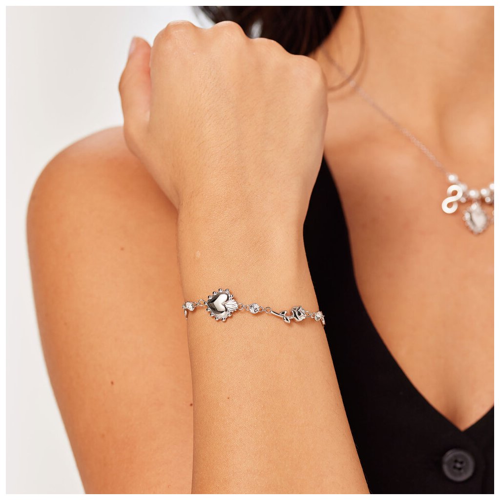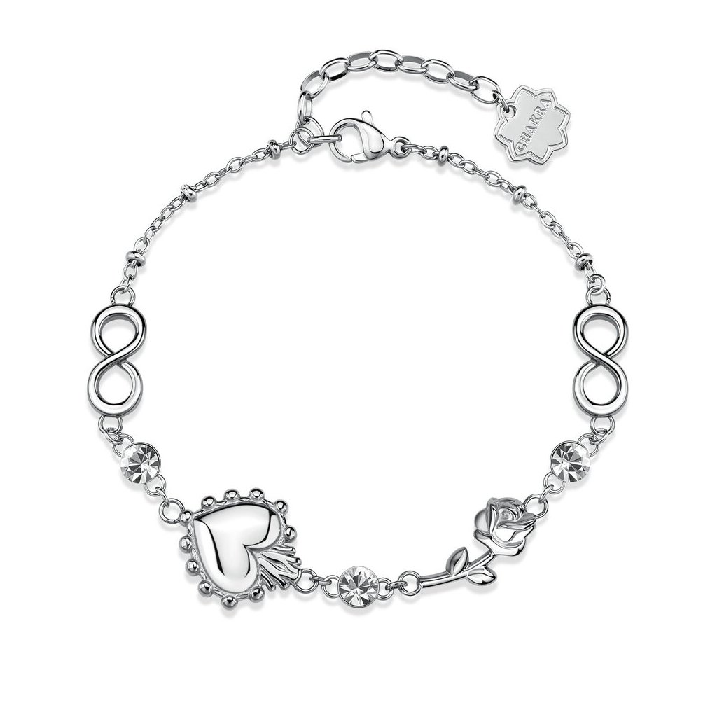 Slušivý náramek Chakra značky Brosway je elegantní doplněk pro ženy ,vyrobený z kvalitní chirurgické oceli 316L ,s bílými kameny, ozdobným srdcem, růží a symboly nekonečna dodává harmonii a rovnováhu ,je ideální volbou pro každodenní nošení ,tento náramek nejen že zdobí, ale také přináší pocit klidu a pozitivní energii. Dodáváme v originální krabičce značky Brosway.