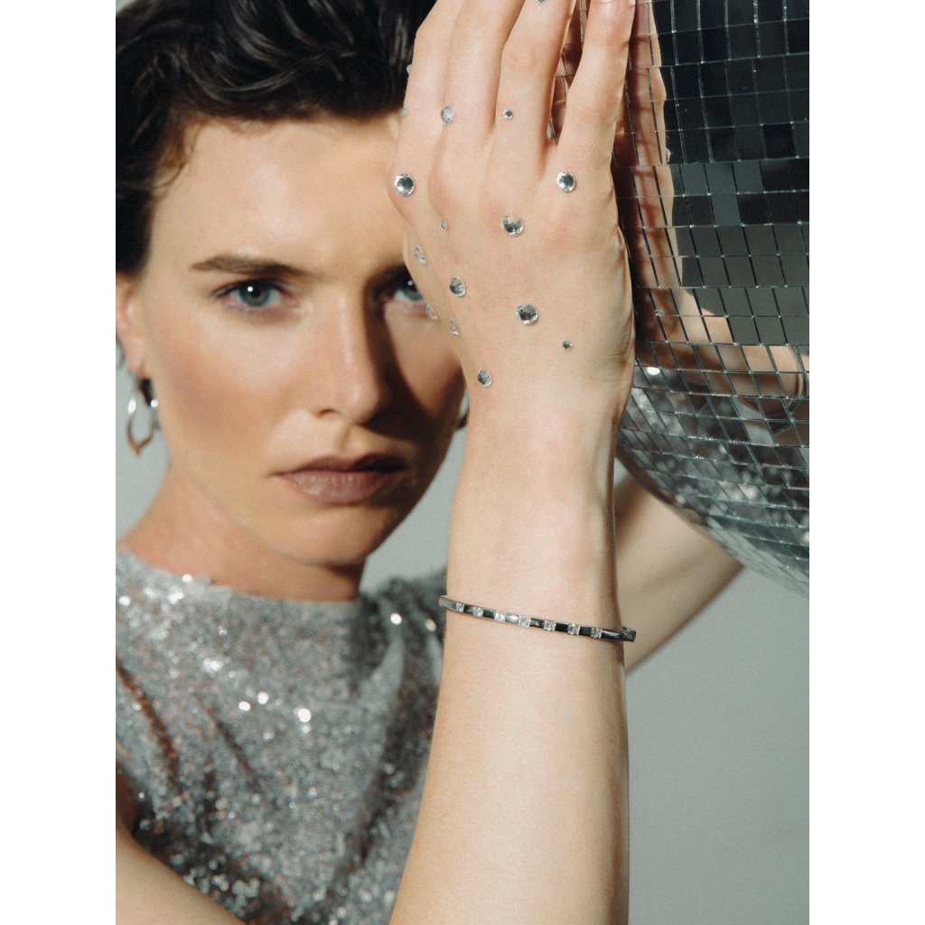 Objevte sílu jednoduchosti a dokonalé rovnováhy mezi designem a leskem. Náramek ENIGMA přináší moderní vzhled s čistými liniemi, které zdobí jemně zasazené kameny z kubické zirkonie Preciosa.