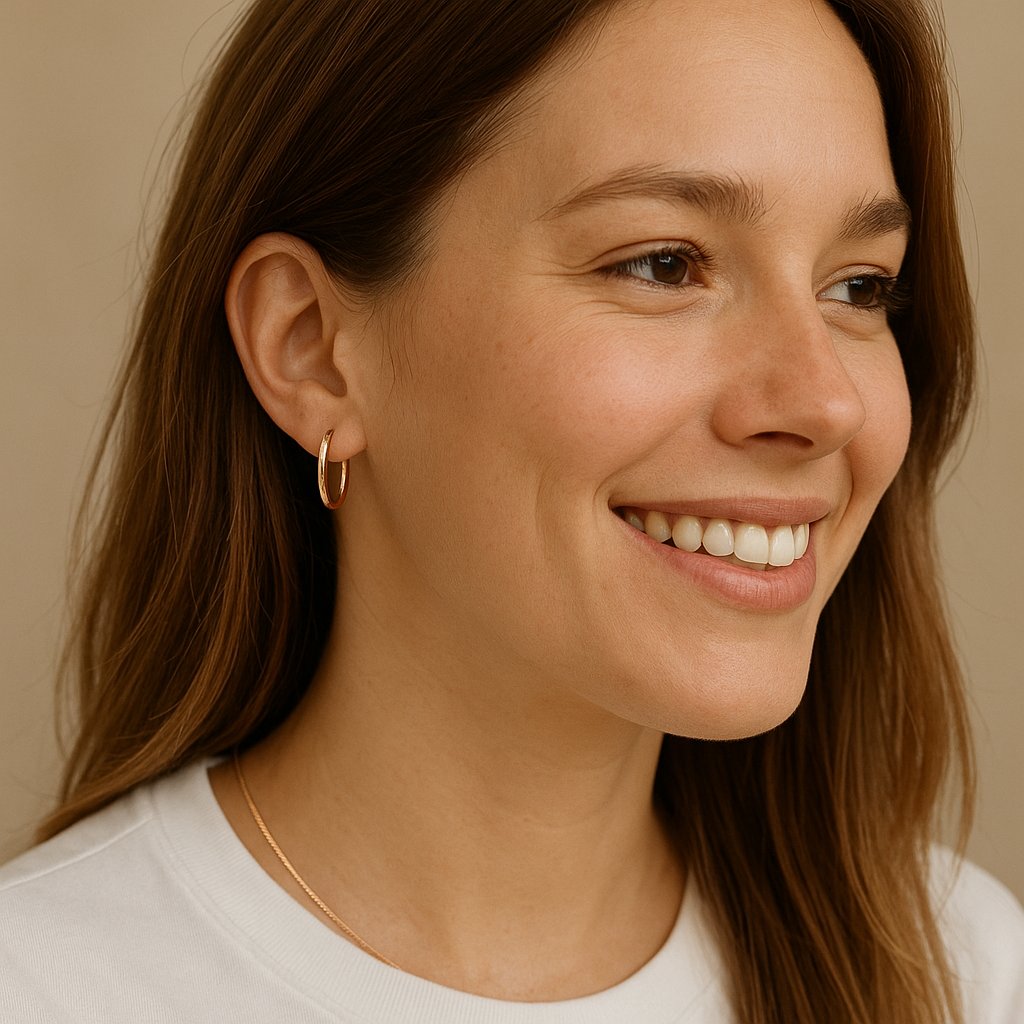 Náušnice jsou vyrobeny z kvalitního 14karátového zlata (ryzost 585/1000), které zajišťuje dlouhou životnost, lesk a odolnost proti poškození. Každý pár kombinuje tři odstíny zlata – žluté, bílé a růžové – bez jakýchkoliv dalších kamenů. Tento harmonický mix dodává šperku moderní a univerzální vzhled, díky němuž se snadno sladí s jinými zlatými doplňky. Zlatý povrch je hladký, lesklý a příjemný na dotek.