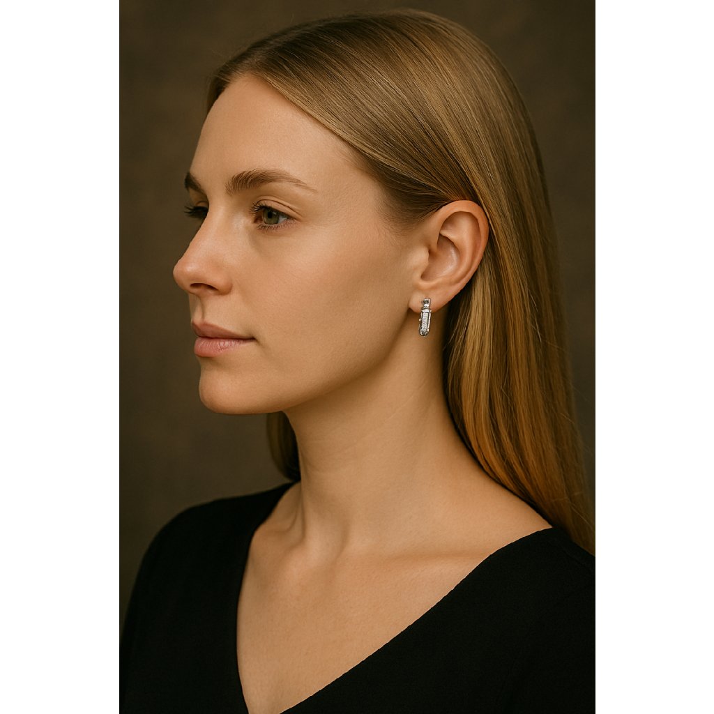 Tyto náušnice vynikají jemným, ale hodnotným provedením — kombinují klasický design s diamantovým akcentem o velikosti 0,220 ct, který dodává šperku třpyt a prestiž.