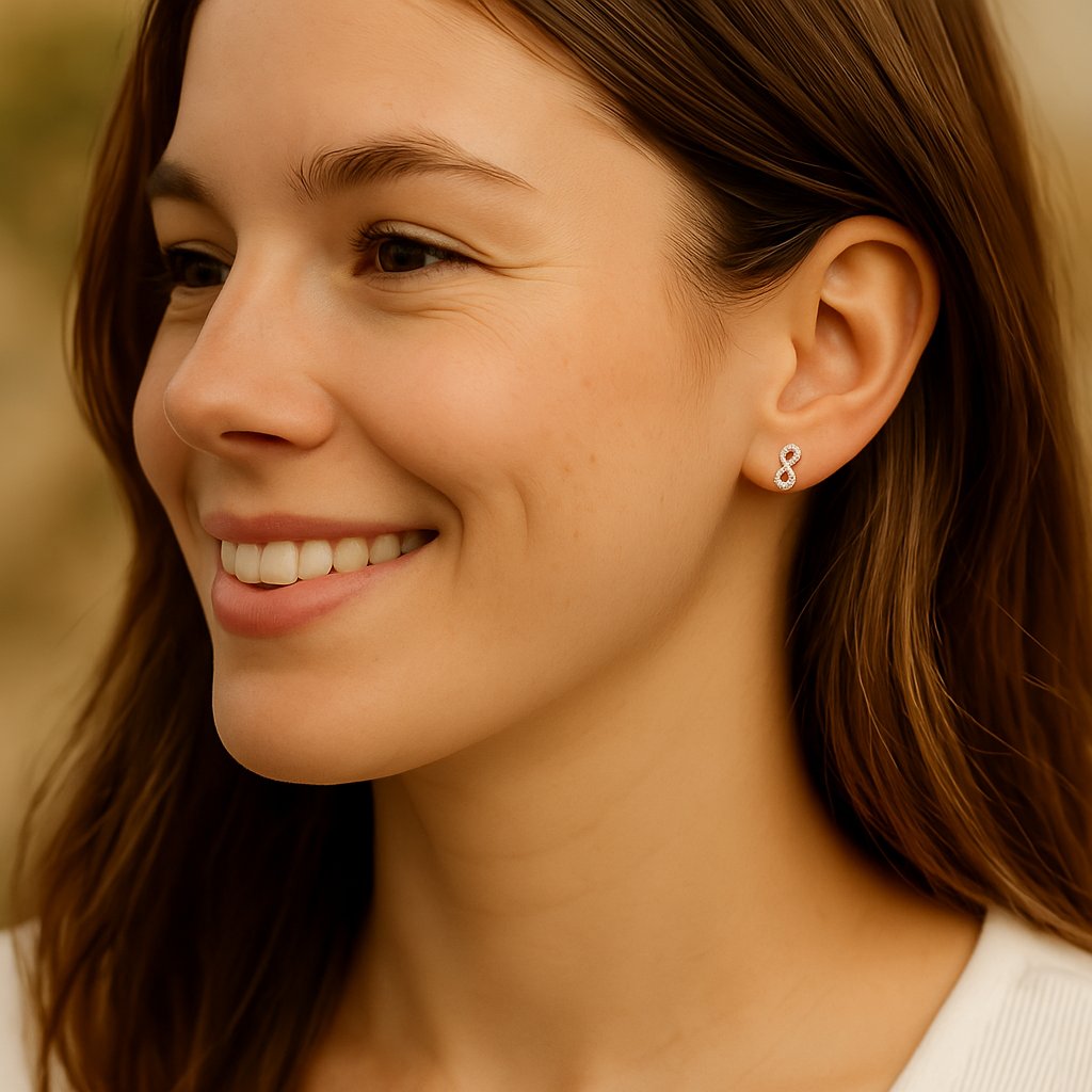 Náušnice nabízejí minimalistickou formu symbolu nekonečna. Tento lehký motiv vyjadřuje nadčasovost a jemnou osobnost.