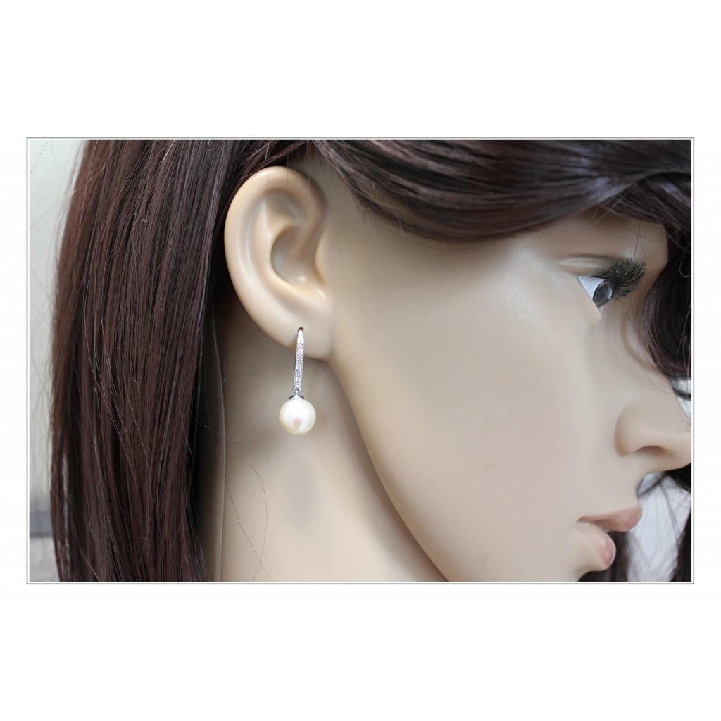 Perlové náušnice se sladovodní perlou 9,5-10mm a diamanty