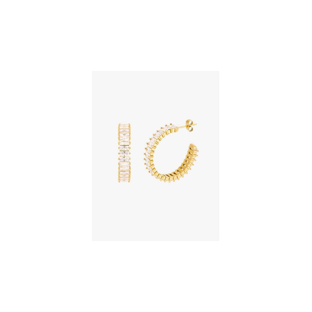 Náušnice jsou vyrobeny z chirurgické oceli s povrchovou úpravou ve zlatém tónu, díky čemuž jsou odolné, hypoalergenní a zároveň velmi elegantní. Dominantní kubická zirkonie Preciosa je známá svým dokonalým brusem a čistotou, což zaručuje dlouhotrvající třpyt a výjimečný vzhled. Pohodlné zapínání zajistí bezpečné nošení po celý den.