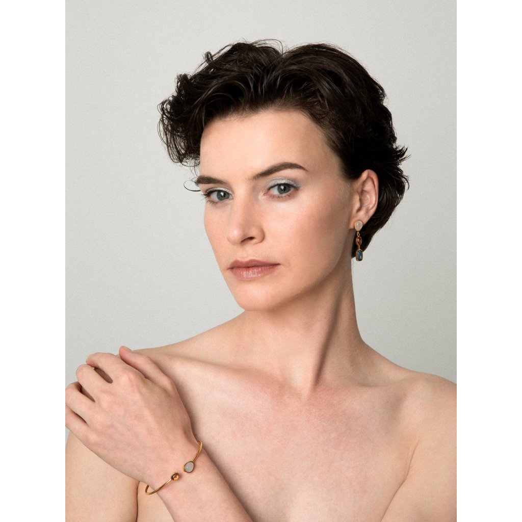 Náušnice jsou vyrobeny z kvalitní chirurgické oceli, která je odolná, stálá a vhodná i pro citlivou pokožku. Zlatá povrchová úprava jim propůjčuje luxusní vzhled, aniž by ztrácely na praktičnosti. Díky pohodlnému zapínání drží pevně a snadno se nasazují, takže se hodí i pro celodenní nošení.