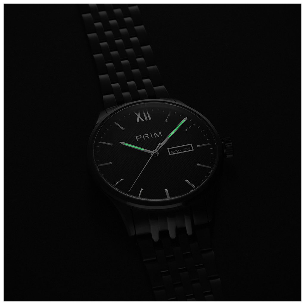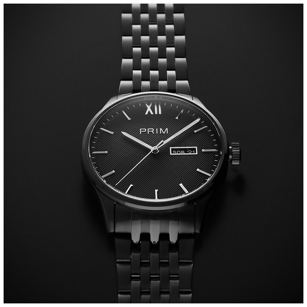Klasické pánské hodinky PRIM .Nová edice hodinek PRIM Klasik 25 s odolným safírovým sklem, které spojují nadčasový design s precizním zpracováním. Tento model je stvořen pro každého stylového muže a nabízí pro tento model tradiční ukazatel dnů s českými názvy. Pánové ocení nově voděodolnost 10 ATM. Nový je také propracovaný plastický číselník s fasovanými indexy na jehož vnějším okraji je zobrazena minutová stupnice. Nechybí ani oblíbené luminiscenční prvky ručiček. Hodinky PRIM Klasik 25 přináší nejen sofistikovaný vzhled, ale i praktické funkce, včetně zobrazení dne v týdnu s českými názvy a data.