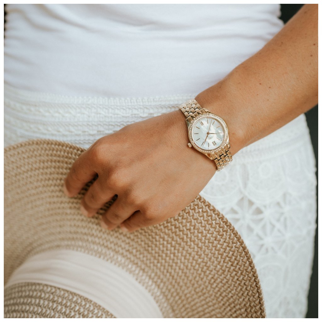 Módní dámské hodinky PRIM Lyra vyrobené z ušlechtilé oceli mají perleťový ciferník v populárních lesklých barvách. Hodinky PRIM Lyra jsou vhodné jak do společnosti, tak i na každodenní nošení do kanceláře. Perfektní módní kolekce pro ženu, která si cení kvality, elegance a módy v jednom.