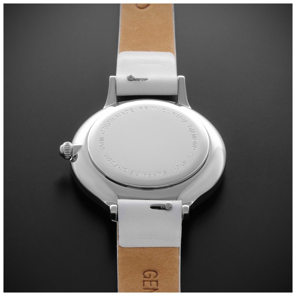 Dámské společenské hodinky PRIM Olympia Diamond 24 jsou vyrobeny z ušlechtilé oceli 316L, leštěné do vysokého lesku. Voděodolnost 5 ATM zaručuje odolnost proti vodě při běžném používání. Elegantní číselník s čitelnými arabskými indexy a 12 pravými diamanty. Safírové sklo s antitouch a antireflektivní vrstvou je u tohoto dámského modelu samozřejmostí. Vybrat si můžete z mnoha barevných provedení s populárním milánským tahem či koženým řemínkem s uchycením "quick release" – systémem pro snadné vyměnění řemínku. Tyto hodinky jsou dodávány v krabičce se záručním listem a certifikátem pravosti diamantů. Každý model je označen svým výrobním číslem a vy tak vlastníte jeden kus ze speciální edice z celkových 250 kusů.