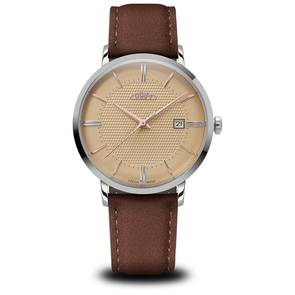 Atraktivní kombinace barvy pouzder a číselníků ve více variantách, datum v barvě číselníku a jemné indexy akcentují minimalistické pojetí celého konceptu těchto hodinek a skládají poklonu českému hodinářskému světu. Na jejich designu se podílela mladá začínající, jejímž úkolem byla inspirace 60. léty minulého století. Uvnitř hodinek pracuje kvalitní a spolehlivý japonský strojek Miyota 8315 s funkcí zobrazení data. Klenutý číselník i ručky s japonskou luminiscencí, dvojité klenuté safírové sklíčko a jemná struktura číselníku vyzdvihuje eleganci i praktičnost tohoto modelu.