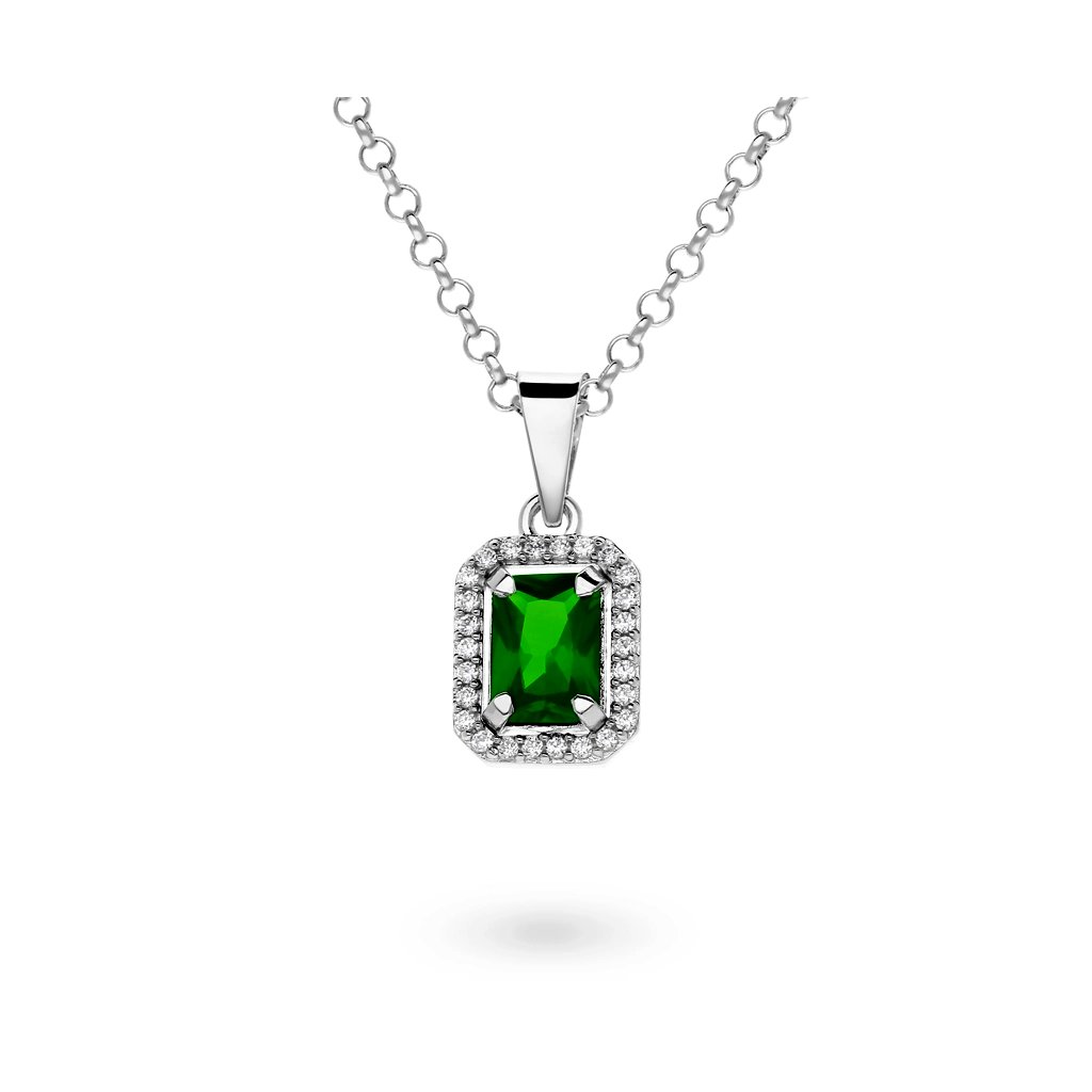 Tento elegantní přívěsek zaujme svým jednoduchým, ale výrazným designem: hranatý zelený kámen je vystaven v decentním rámu z bílého zlata a vytváří harmonický kontrast mezi barvami.