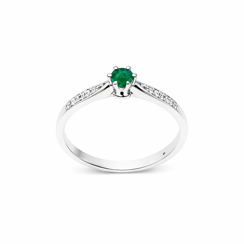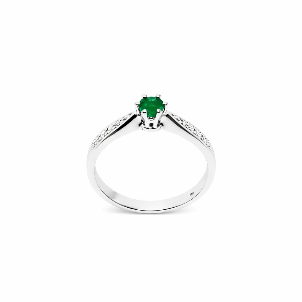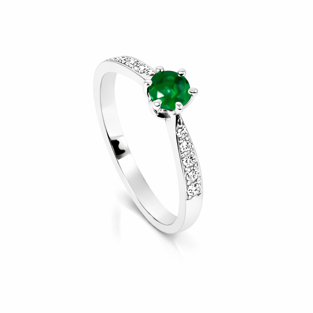 Prsten se smaragdem a diamanty z bílého zlata je vyjádřením elegance a luxusu. Jeho impozantní design a kombinace barev vytvářejí šperk, který zaujme svou jedinečností a noblesou.