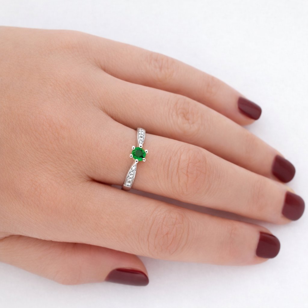 Prsten se vyznačuje moderním a sofistikovaným designem, který zdůrazňuje krásu a lesk centrálního smaragdu a diamantů. Jeho kreativní tvary a precizní zpracování přinášejí prstenu eleganci a šarm, které z něj činí výjimečný klenot.