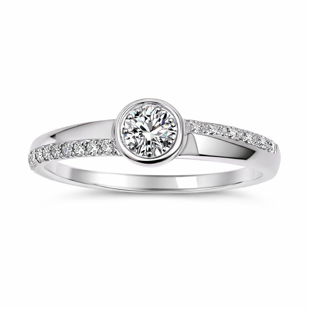 Prsten z bílého zlata se zirkony zaujme elegantním a nadčasovým designem doplněným třpytem drobných kamenů.