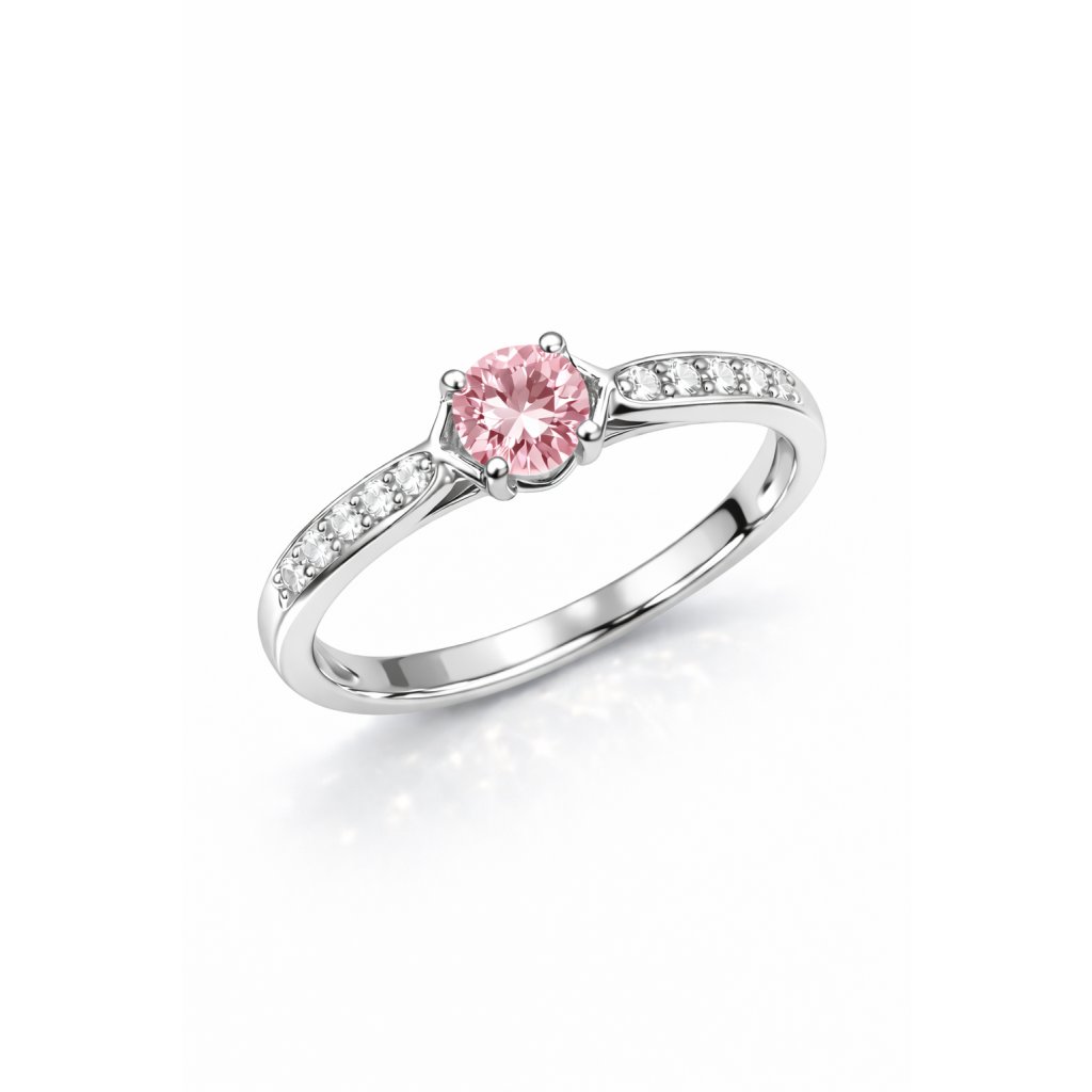 Prsten z bílého zlata růžné barvy kamene