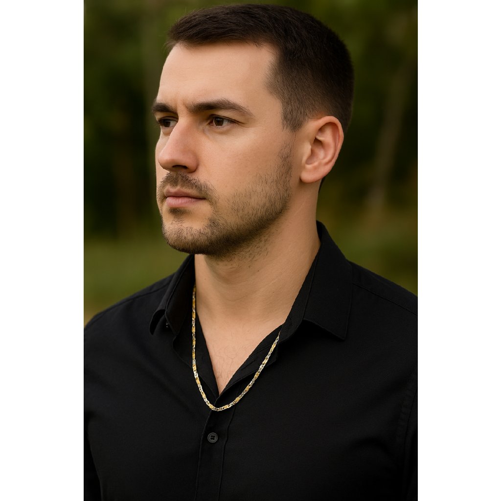 Elegantní pánský řetízek z barevného zlata 585/1000 – kombinace žlutého a bílého zlata, délka 55 cm, šířka 4 mm, váha 9,65 g. Luxusní a odolný šperk.