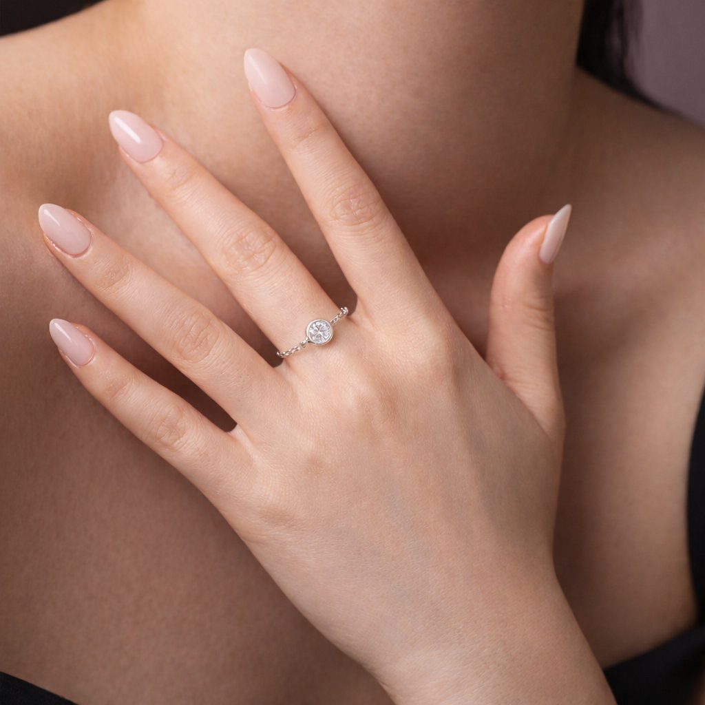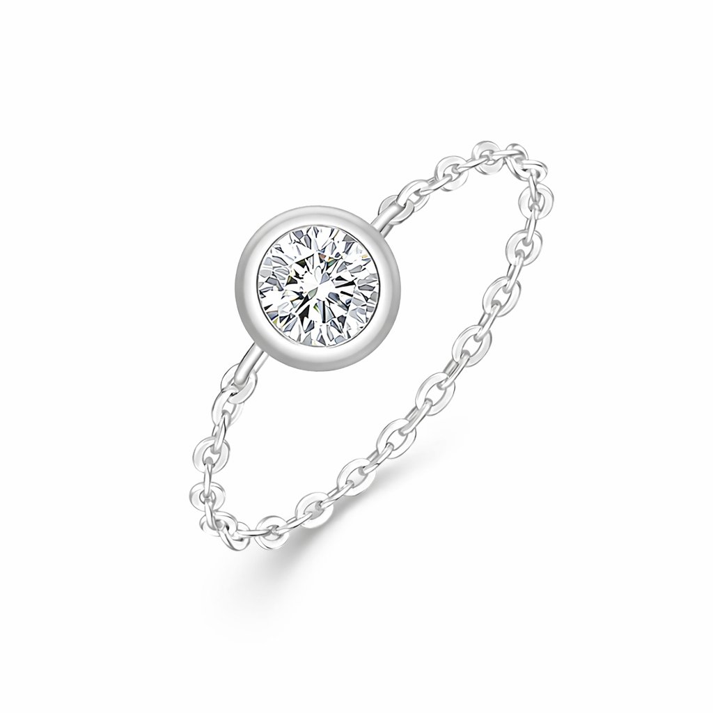 Elegantní řetízkový prsten s moissanitem 0,50 ct je jemný a třpytivý šperk, který vynikne svou vyváženou velikostí kamene a subtilním designem.