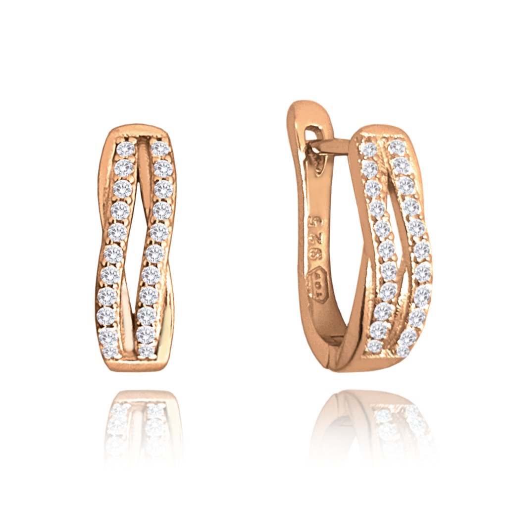 Rose gold elegantní stříbrné náušnice s bílými zirkony 2 řady