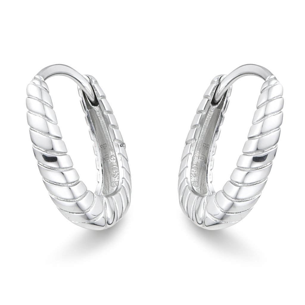 Elegantní stříbrné náušnice – kroužky se vzorem jsou nadčasový a stylový šperk, který kombinuje klasický kruhový tvar s jemně dekorativním vzorem na povrchu.
